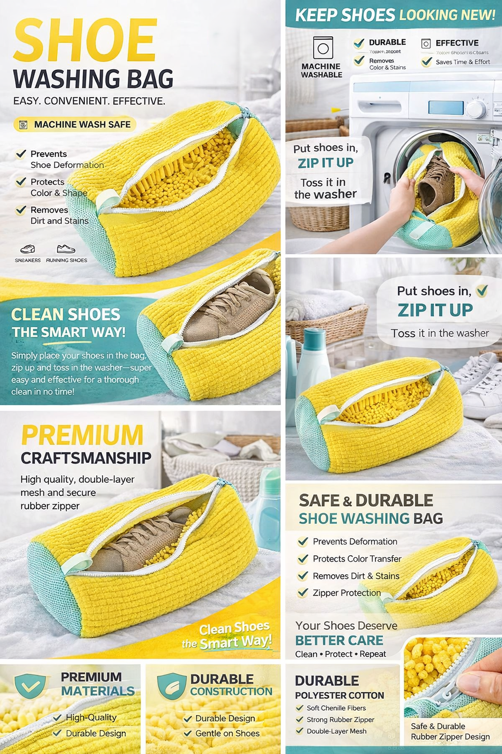 No more tiring hand washing. This machine-washable shoe bag makes shoe care faster, easier, and more convenient for everyday use.